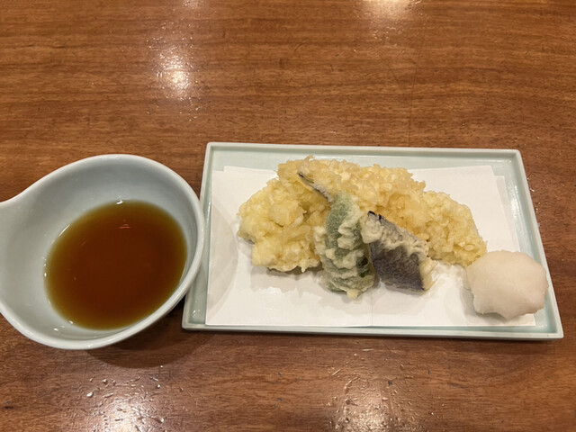 白子の天ぷら950円。大ぶりに分けられた白子が4切れも乗り、リーズナブルでもあります。トロリとした白子は熱で活性化され、旨味たっぷりです(╹◡╹)(╹◡╹)