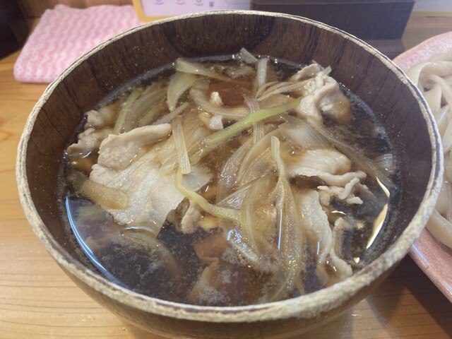 また、つけ汁はキリッとした味わいにたくさんの豚バラやネギなど入り具沢山で満足のいくものでした。