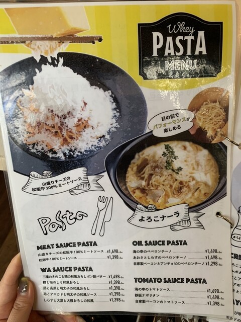 ここはホエイパスタやホエイピザが名物!と聞いて、最初〝ホエイ〟と聞いてクジラ?って思いましたが、ヨーグルトやチーズから出て来る液体のことを言い、それを使ったパスタとピザ!