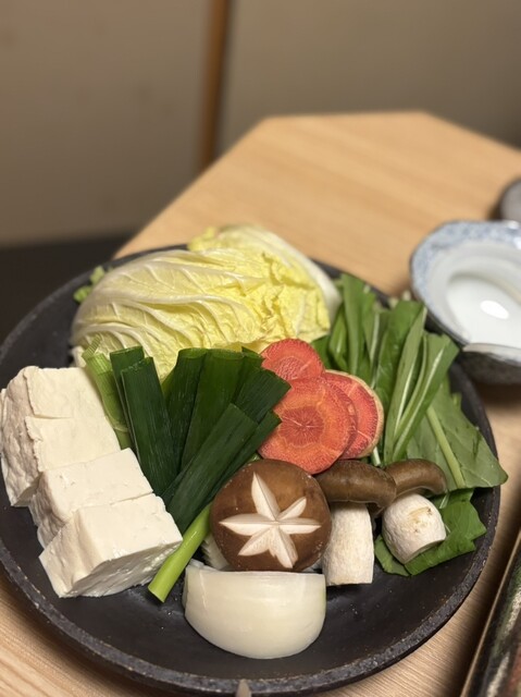 野菜盛り合わせは、立派な椎茸や味の濃い人参など新鮮さが際立ち、木綿豆腐も食べ応え十分。
