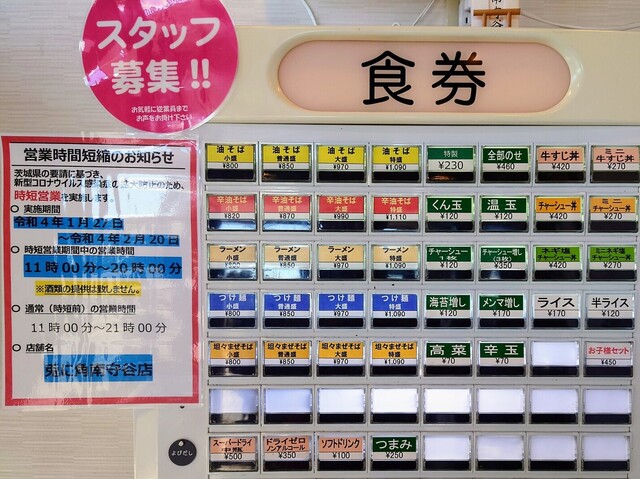券売機 メニュー 設置場所が店内からエントランスに変更になりました。