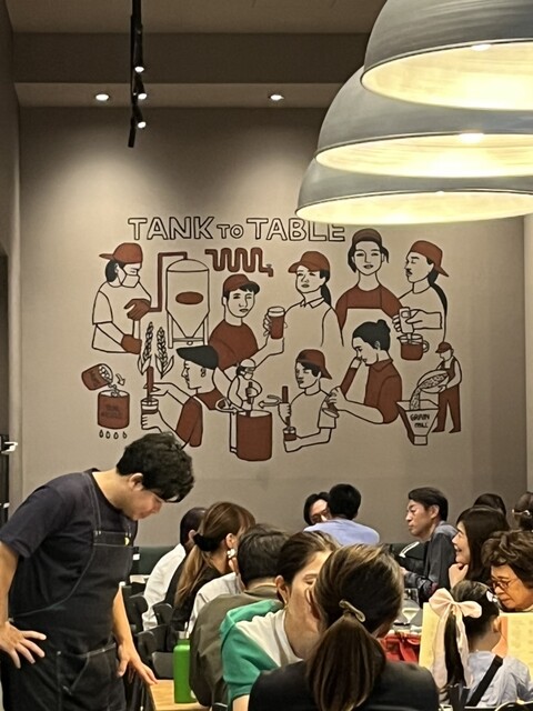 このお店の特徴は、店内で醸造されるクラフトビールと、自社で直輸入しているワインです。どちらも店内のレストランスペースで楽しむことができます。