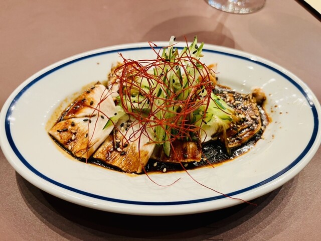 黒いよだれ鶏を糸赤唐辛子を一緒に食べると本当においしかったです。また中国たまり醤油仕立てのタレはシンプル且つ奥深い味わい。