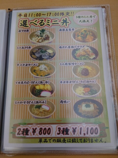 選べるミニ丼『イカ天うどん(温)』『辛ニラ玉ラーメン』『肉味噌ラーメン』