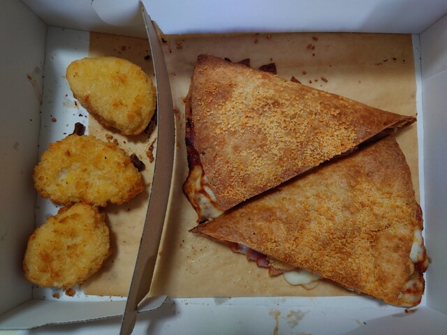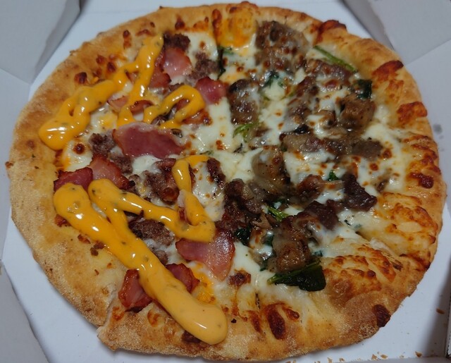オーストラリアのドミノピザで販売されていたクリスピッツァバーガー、日本での発売から半年、ようやく食べられました。