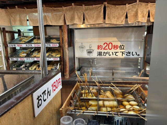 こじんまりした店内にセルフコーナーのうどん、ゆで釜、天ぷら、おでん、お茶とお水に子供用食器がうまいこと配置されていて収納のプロかと思います。