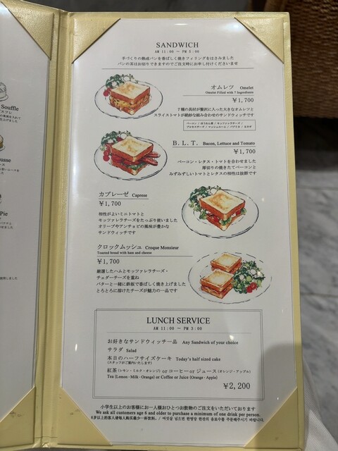 カプレーゼサンドウィッチのランチ(2,200円)を注文。15分ほどで提供されました。
