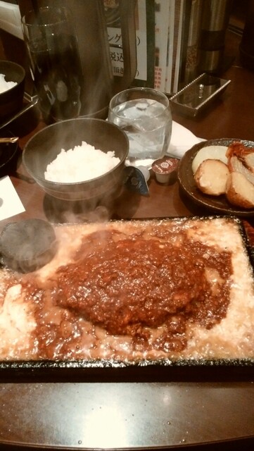 ハンバーグを噛み締めると肉汁とタマネギの極上のハーモニーにデミグラスとチーズが加わり至極。