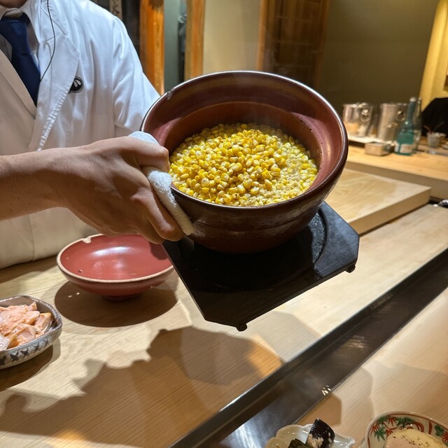 季節の鱧、コーン、うになどなど。みたこともないサイズのサザエも凄かった。