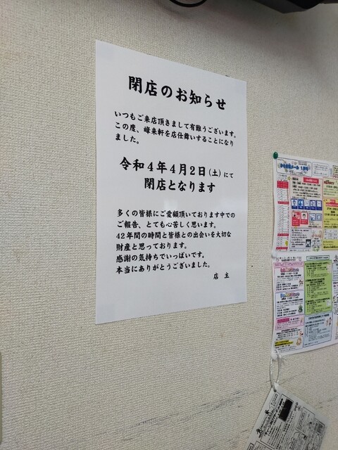 私の仕事の都合で、本日が最後の峰来軒。少し気合を入れて、朝九時過ぎに到着。