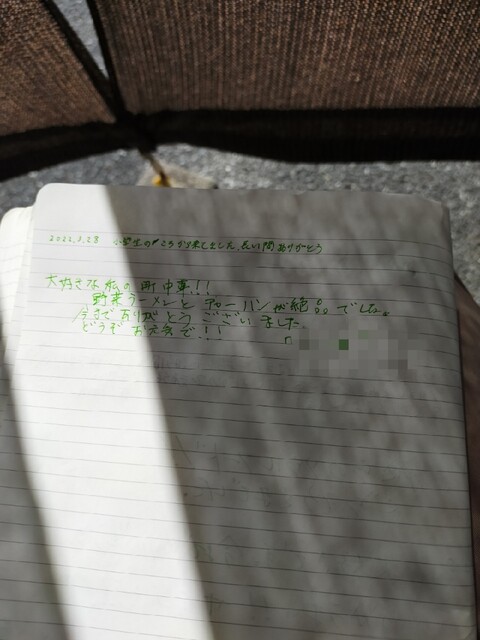 待っている間に、寄せ書きノートが後ろの方から廻ってくる