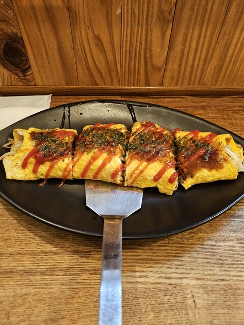 4枚目。豚お好み焼き。見た目通りのでっかい豚肉が嬉しい1品。