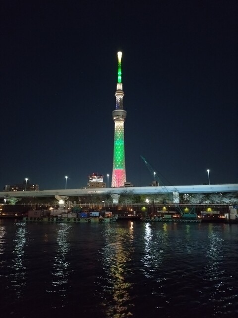 品川〜スカイツリーを往復するクルーズでしたが、デッキに上がるタイミングが2度あり、充分に夜景を楽しむことが出来ました。