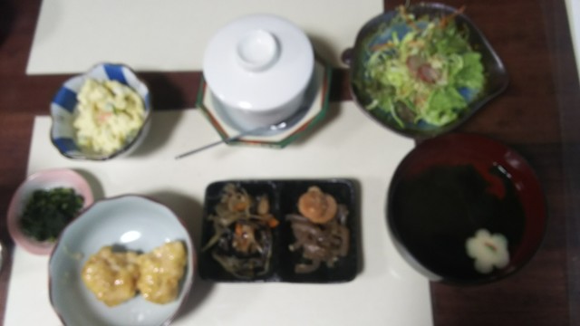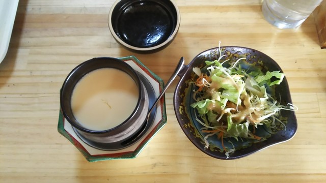 サラダ、茶碗蒸し、お吸い物。