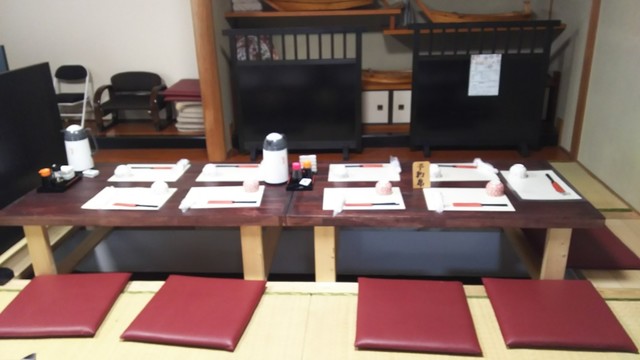 夕方5時半、駐車場に着くとまだ準備中の札、そこから電話して、店内に上がり込みます。