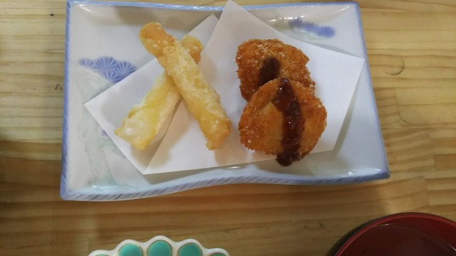 蓮根饅頭、もち魚の南蛮漬け。