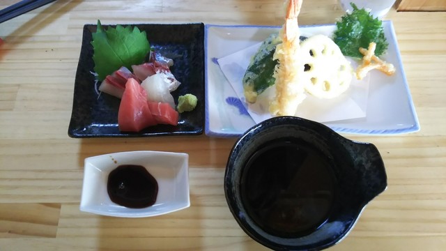 ・刺身盛り(カツオタタキ、中トロ、赤ハタ)