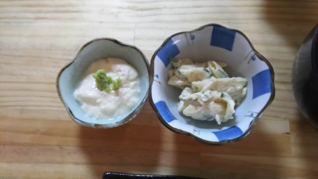 小鉢2種、チーズ豆腐とマカロニサラダです。