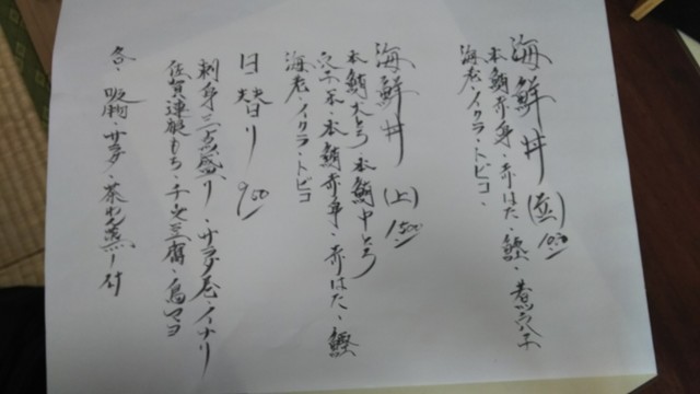 今日は海鮮丼(並)行きます。(上)は予算が許しません。しかし、メニューにえらい物を見つけてしまいました。