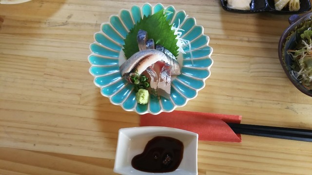 刺身3種盛り、アジ、サバ、イワシ。青物尽くし。