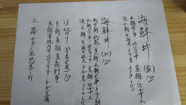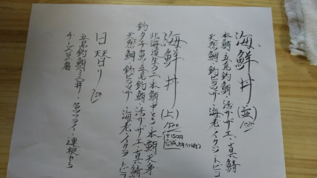ん・・・大将、あと20円上げて海鮮丼(上)にしてしまえばいいやん。