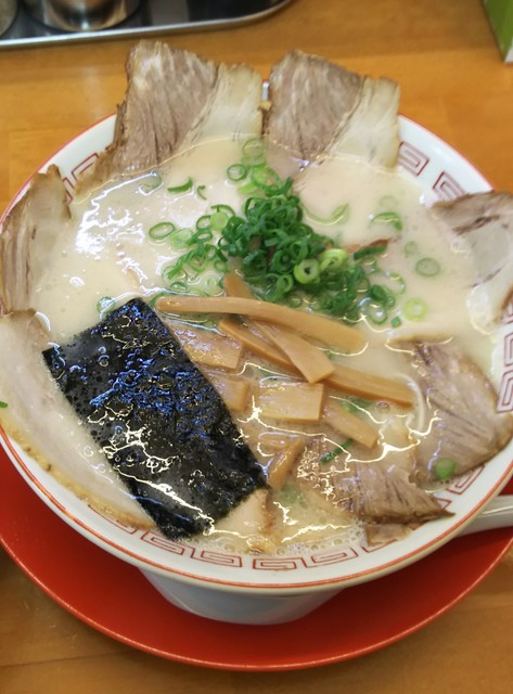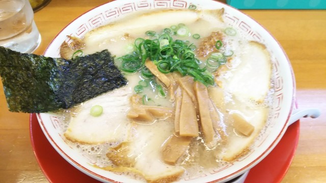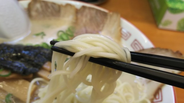 今は亡き基山町のホットステーションのスープを、グッと圧縮したというか、骨粉が沈むような泡ブク系とか、呼び戻しのような濃度のこさでなく、味が濃いというか、そんな感じ。