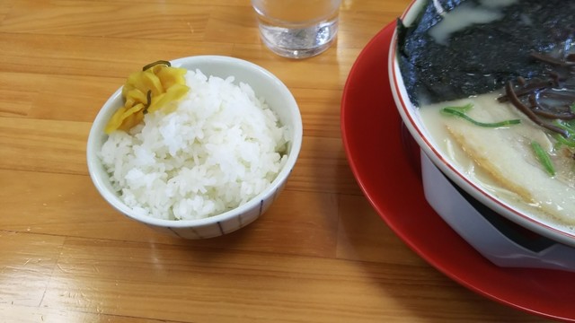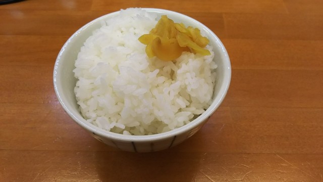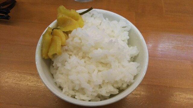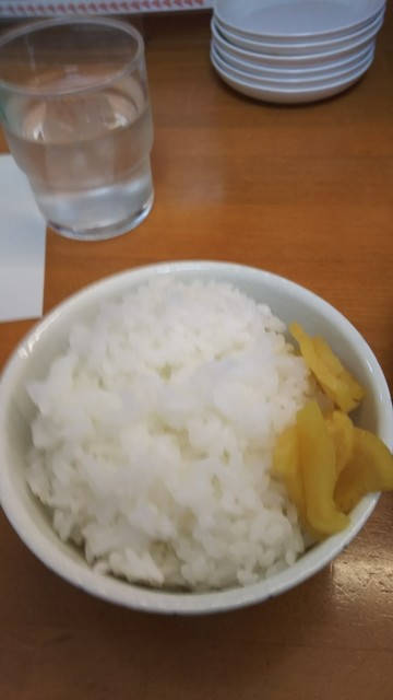 セットの焼き飯の陰に隠れてますが、こちらの御飯、美味しいんです。サービスの漬物との相性もばっちりで、ラーメンとも、良い感じなんです。
