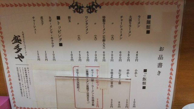 佐賀県鳥栖市の「盛多や」さん、私的好きなラーメンランキング2位のお店です。