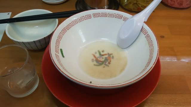 替え玉はかなり悩みましたが、ご飯も食べてるし我慢、その代わりスープは完飲。