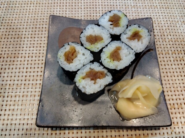 夜桜巻はトロのタタキと沢庵、普通の細巻より多少ボリュームがあります。
