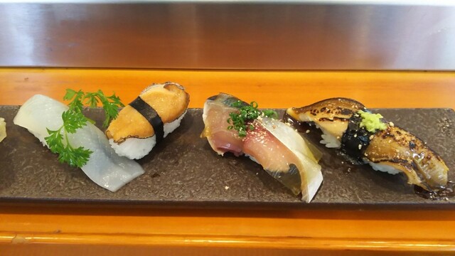 調子に乗ってお好みで、イカ、カンパチ腹身、サバ、アナゴをオーダー、堪能させていただきました。