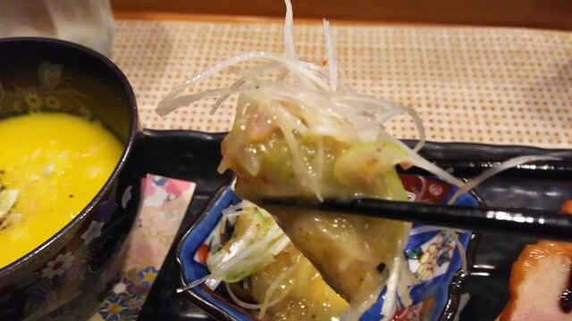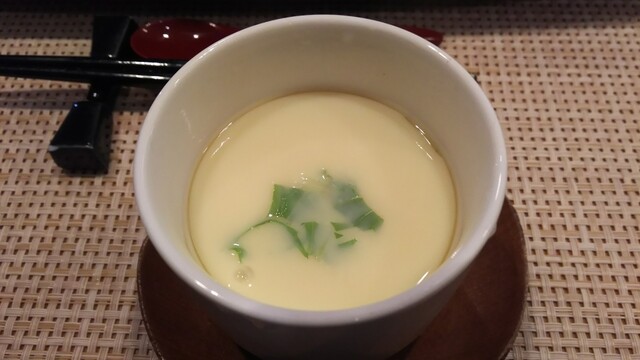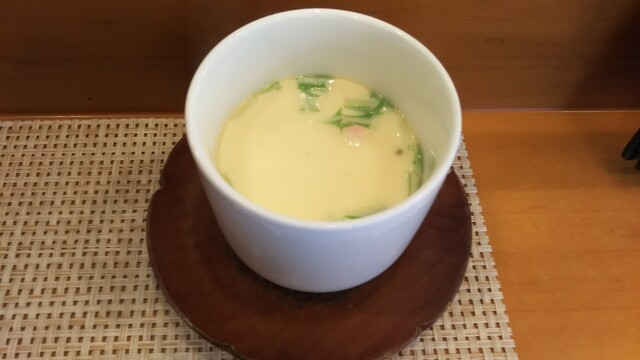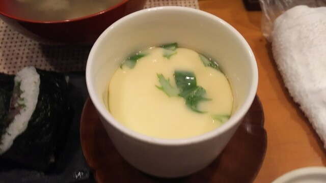 とりあえず、竹にぎりをお願いすると、最初に茶碗蒸し。