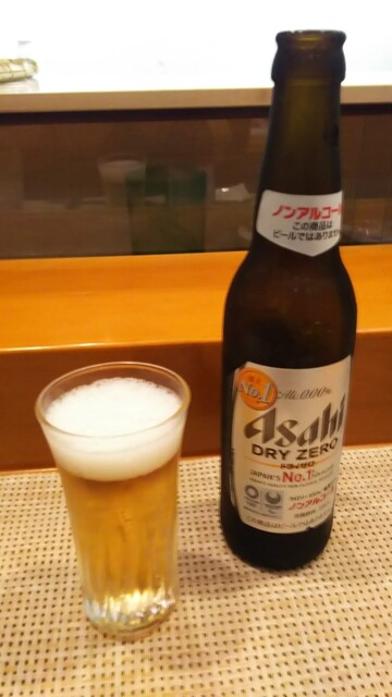 梅にぎり+かんぴょう巻ですまそうと思ったのですが、つい、ノンアルビールもオーダーしてしまいました。(笑)