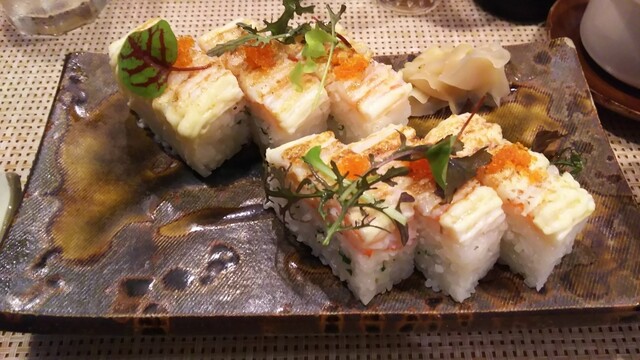 お願いしたのは、「エビ押し鮨 800円」と「四季巻 700円」です。