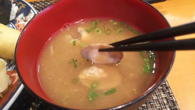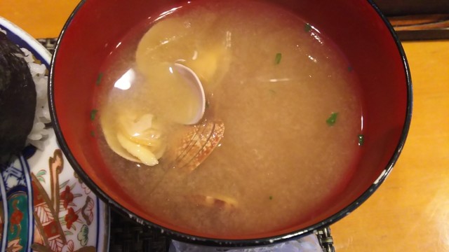 汁物はあさりの貝汁、後で数えたら、8個も入ってました。