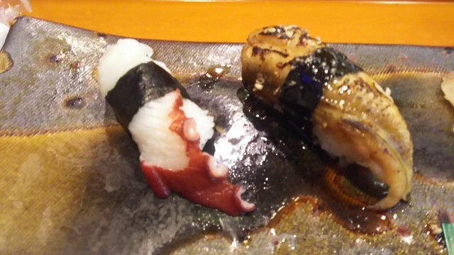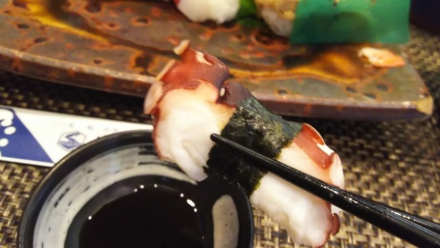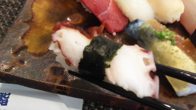 タコは海苔でとめられているし、サバは軽く〆た物に白板昆布を合わせてあります。