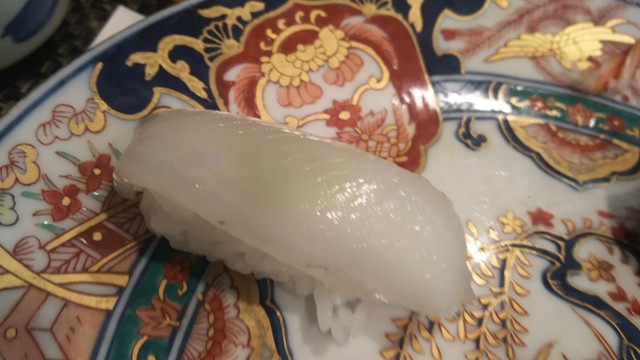 ご主人は、予約分らしいバッテラを数人前作ると、更に用意してあった鮨桶を横目に、見事な色絵皿に盛り込んでおられます。