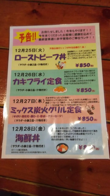 ランチ営業の最終週は、お正月休み前の感謝週間だそうで、その最終日は、「原価無視の海鮮丼」が日替り定食として提供、これは行かねばなりません。