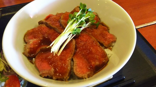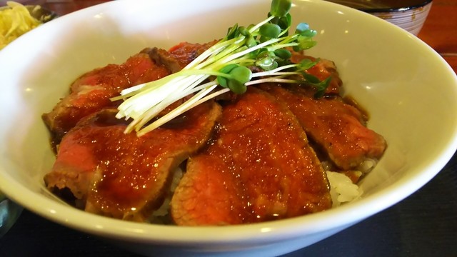 続いて入って行くと、カウンター席に座って日替りのローストビーフ丼をオーダーしました。