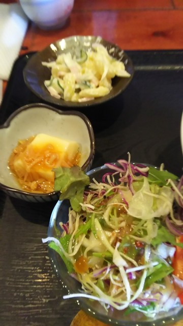 これにサラダ、小鉢2種、汁物で850円、普通に考えて、十分お得な海鮮丼です。