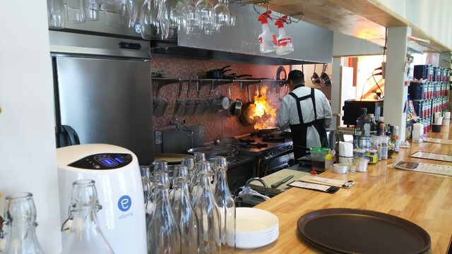 店内は、テーブルの配置を少し変え、間隔をとってあります。