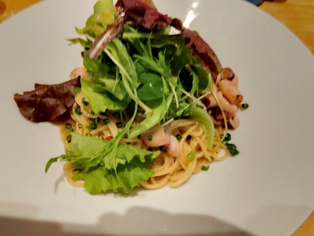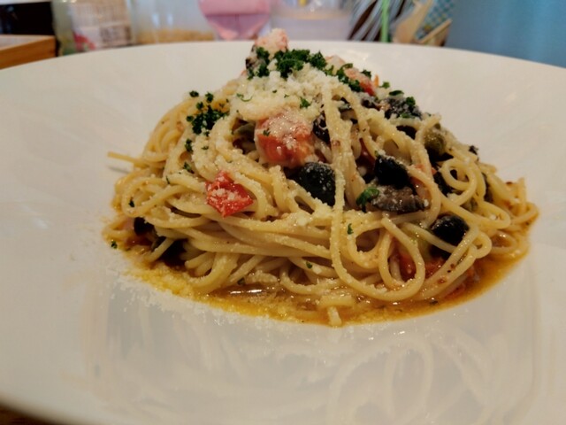 ボーノさんのペペロンチーノは、魚介や葉物野菜と相性が良いので、外しません。