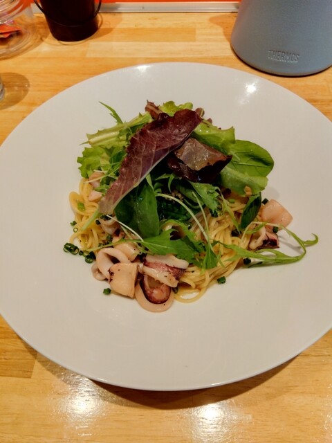 シンプルに美味いペペロンチーノに、イカがゴロゴロ入っております。