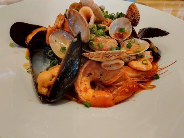 すぐに配膳されたサラダを食べて間もなく、ペスカトーレも提供されます。