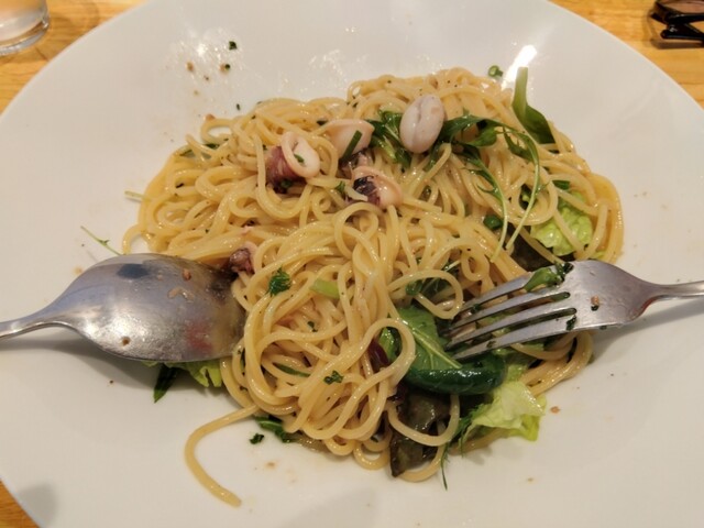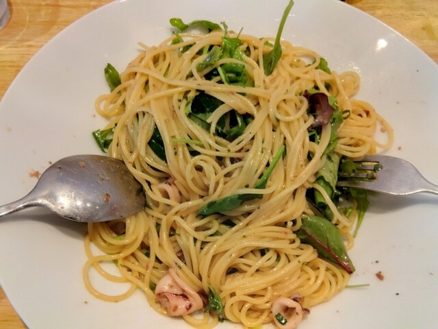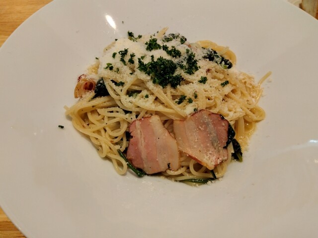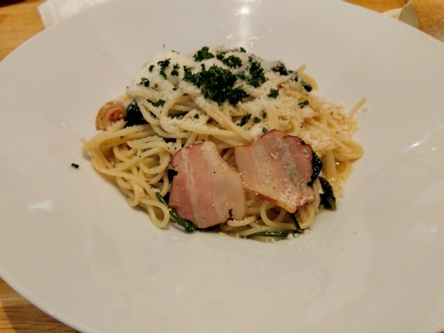 ボーノさんのペペロンチーノが美味しいのは、ご存知の方も多いと思いますが、青菜とベーコンの相性がメチャメチャ良い。