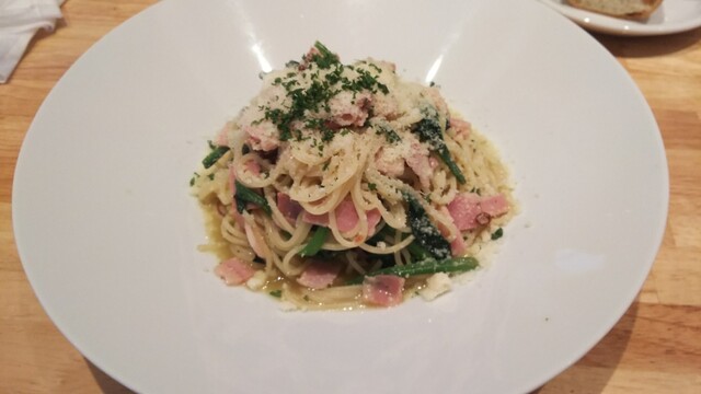 「カツオ菜とパンチェッタのペペロンチーノは、ボーノさんで最強」