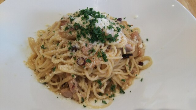 アサリで麺が見えない「ボンゴレ・ビアンコ」、