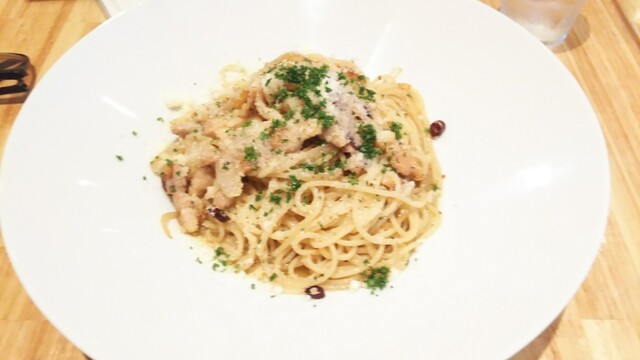 サービスランチの具材が、アスパラとベーコンだそうなので、ペペロンチーノでお願いしました。