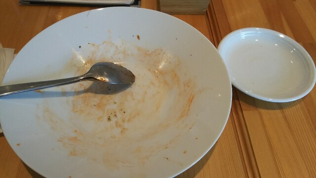 私は、一皿の料理を食べる途中で飽きる事が無い、食嗜好なので、大盛りをズルズル食べ続け、完食しました。