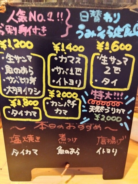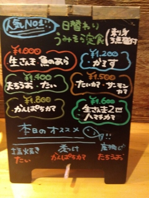 さてさて、美味しい煮魚を食べたいので、ガッツリしたのを求めて「うみからそらへ」さんです。